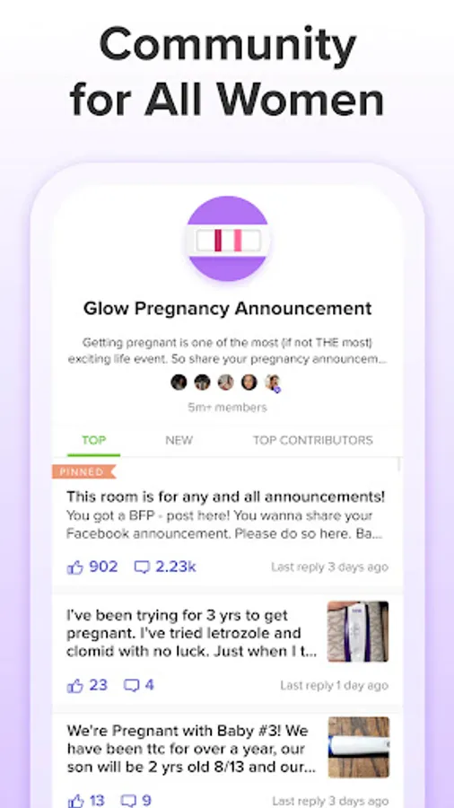 ✔️ Trying to Conceive (TTC): Glow offers a supportive community for those trying to conceive. Join the conversations, share your journey, and learn from others' experiences. Plus, get tips and advice from fertility experts to enhance your chances of getting pregnant.