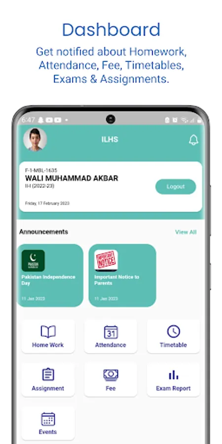 ILHS is a user-friendly mobile learning management system designed to help students achieve academic success. With ILHS, students can easily access and organize all their course materials, assignments, and grades in one convenient location. The app also offers a variety of powerful tools, including real-time notifications, announcements, fee details, and exam reports, to help students study more efficiently. Additionally, ILHS includes features such as daily Homework and assignments. Experience the future of education with ILHS's cutting-edge mobile LMS.