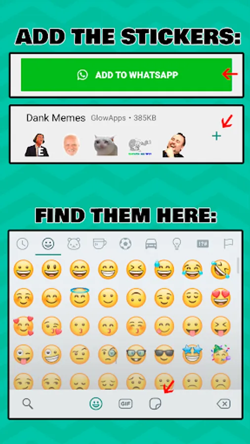 You can download your favorite pack from our app and send stickers to your friends easily from WhatsApp. We have lots of funny memes, photos and reactions for free avaliable.