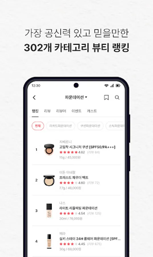 You can see at a glance the rankings made from user reviews, including beauty, inner beauty, and household items.
