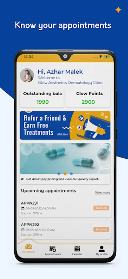 The application is for the clients to track their appointments, available sessions, history of sessions taken. They can check their account statements and Glow Points statements and manage their profile on the go.