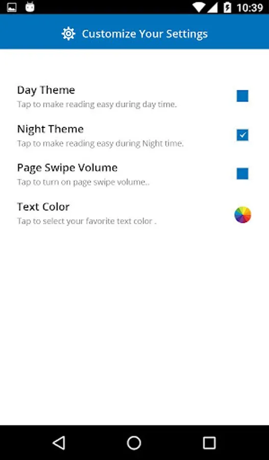 Easy to switch between day and night theme for easy book reading.