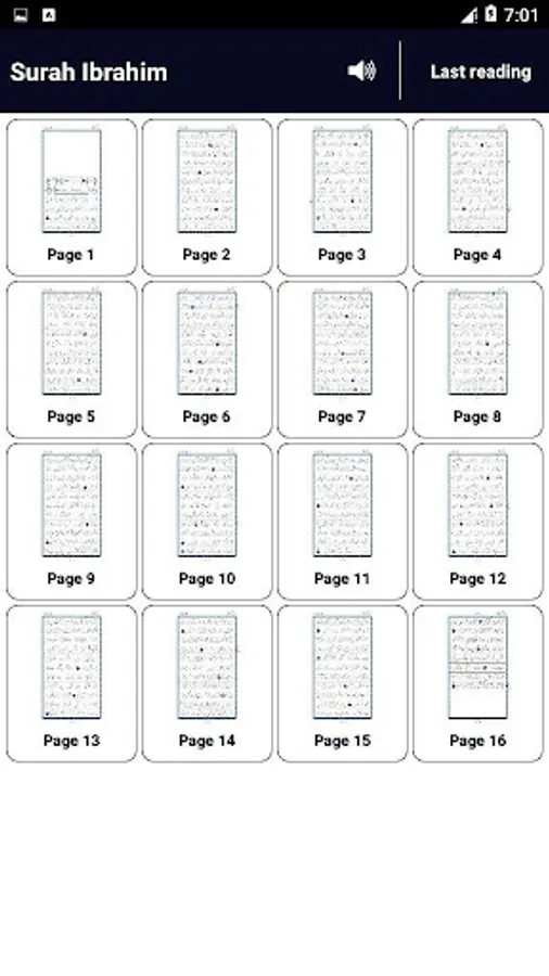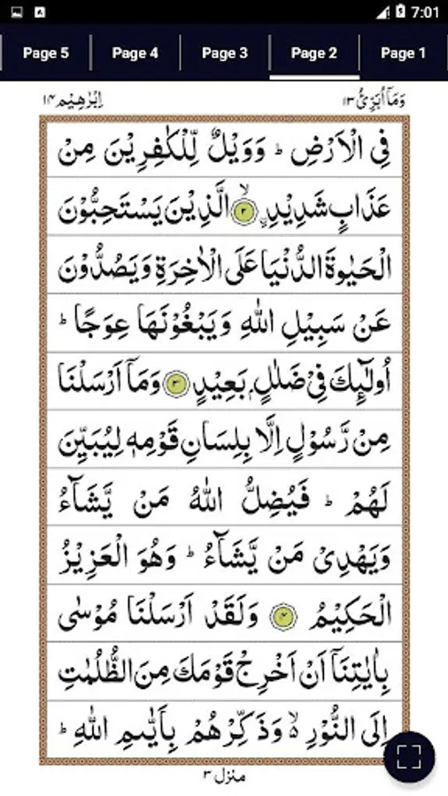 This app let you have easy navigation through "Surah" pages. This means you can simply go to any page of Surah by just swapping pages.