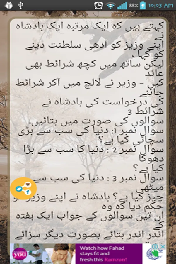 Dilchasp Qissay is most popular app for having best moral and stories. App has number of categories with amazing general knowledge content. Read beautiful stories about history and life lessons. Dilchasp Qissay is designed for everyone. It has easy urdu stories you can maximize the text to read easily.