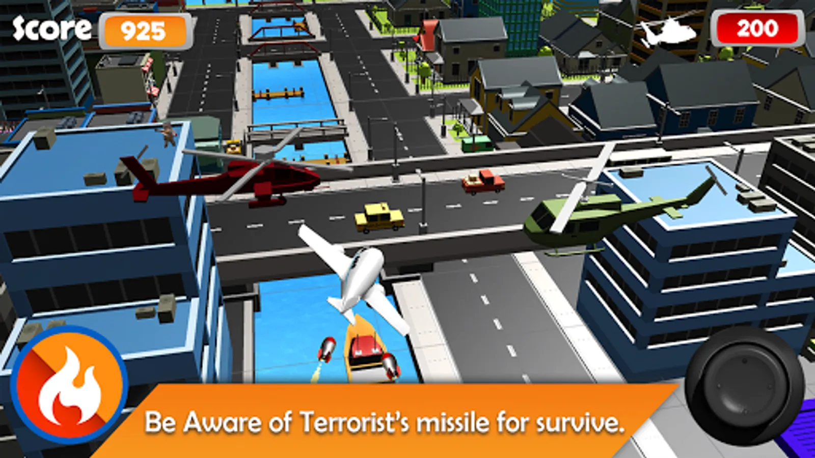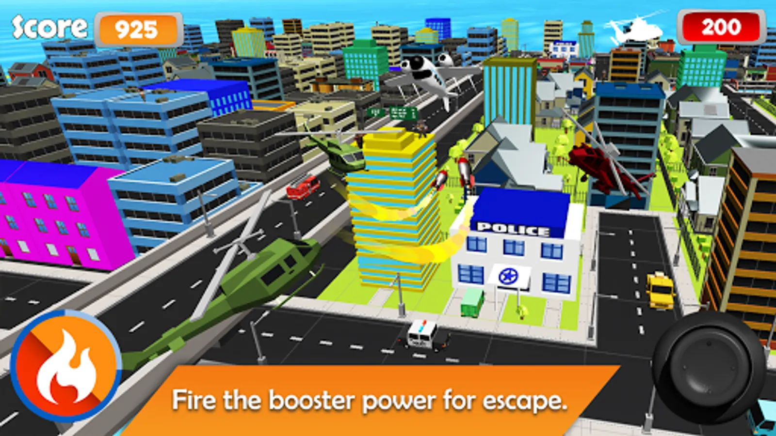 How to play?Using the joystick button on the right hand side, navigate the plane to steer left, right, up and down. Moreover, there is also a power booster on the left hand side to speed up your plane!