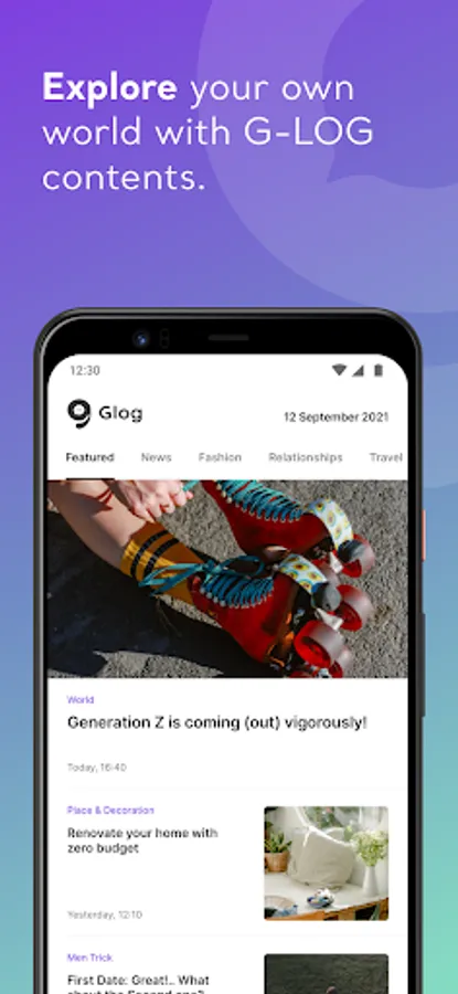 With gloxy's user interface, you can create your profile in minutes, discover the people around you and join the blog with different content.