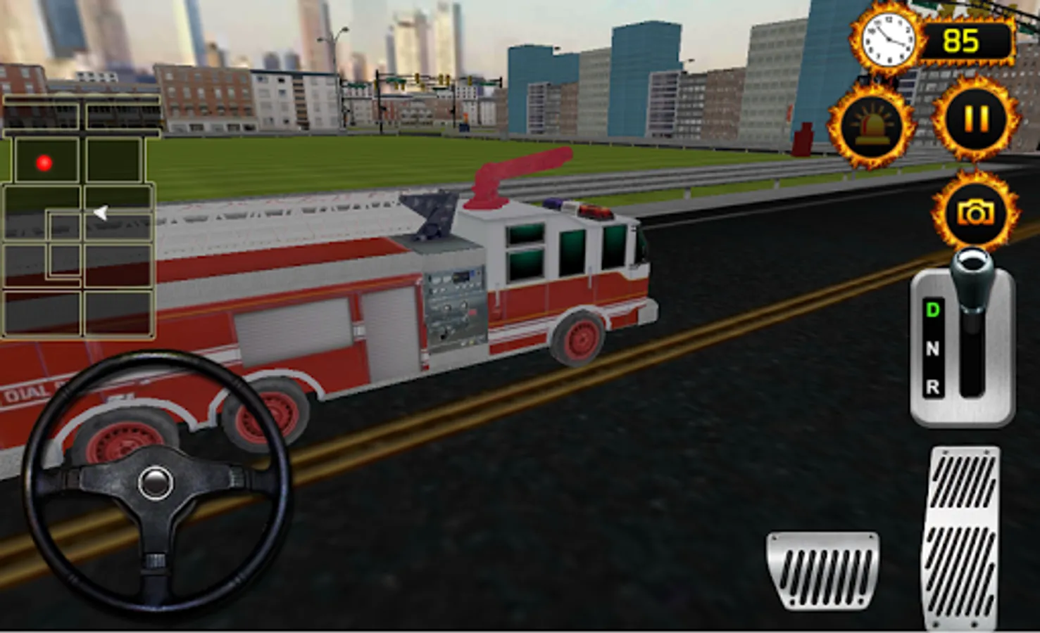 - Press the gas pedal to accelerate the fire truck forward or backwards