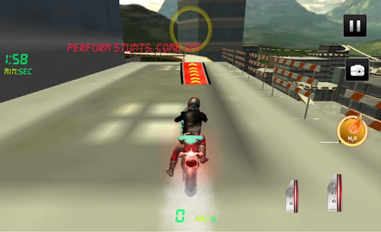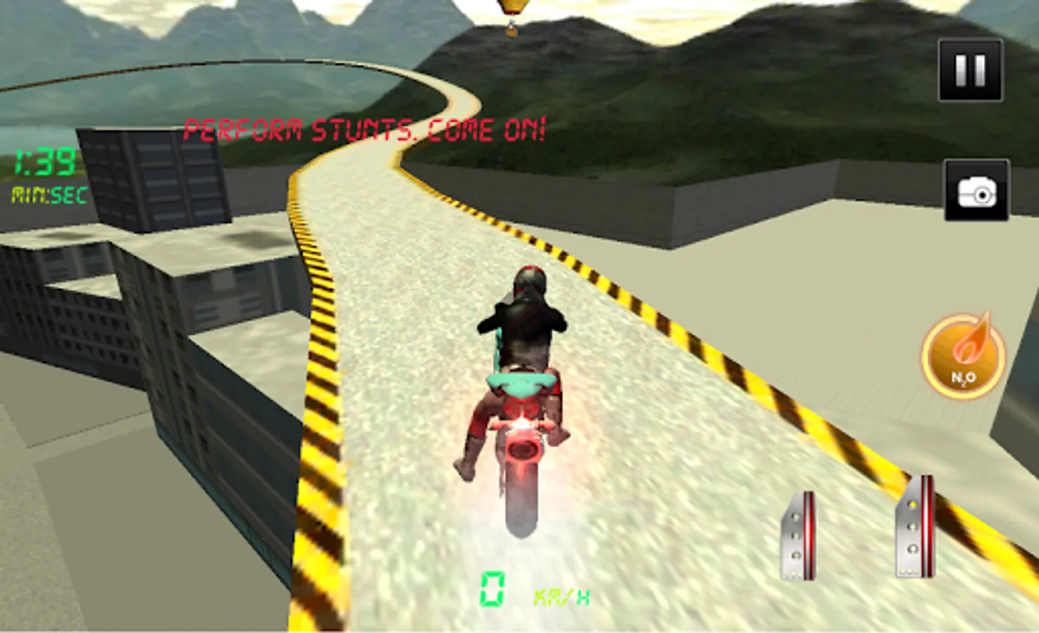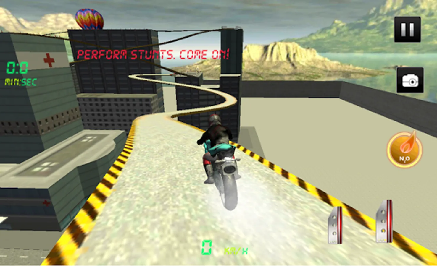 Dodge risky obstacles amid dangerous hills! Make your bike fly through the obstacles with nitro boost. Enjoy the thrill of driving through an amazing landscape. You will get addicted to this new stunt game! The realistic environment and cool stunts will make the ride awfully wicked. Get ready to drive cool bikes through dangerous tracks! Survive this challenge and become the next stunt master!