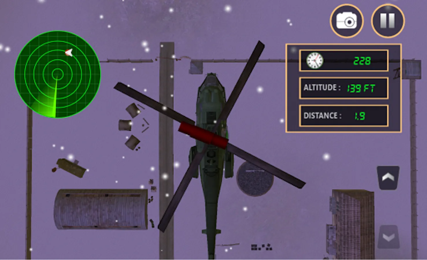 Learn to fly now. Don’t worry about rain or wind. Become an RC Helicopter pilot; take control of an RC Helicopter. Take control of a super realistic RC helicopter and go on flying adventures in military battle environment. Extreme RC Helicopter Flight Simulator 3D offers 10 exciting missions where you will be able to take control of a RC Helicopter and carry out tasks that will involve, rescuing people, collecting objects, shooting missiles at enemies, knocking over obstacles with wrecking balls, using super-powerful magnets to collect hazards, and much more!