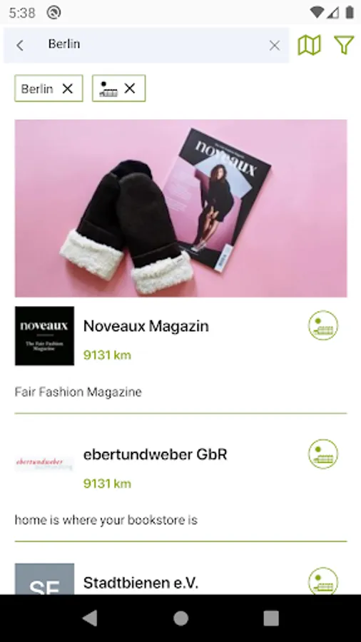 You can either scroll across the map and search for entries near you, or filter by industry. The free text search makes it easier to find special entries, such as an organic box.