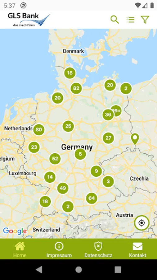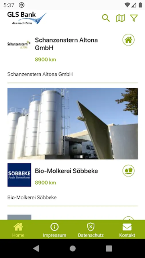 Your company, project or initiative is financed by GLS Bank, you are a business customer or you have a different connection with us? Then contact us via the contact form in the app to be included in the GLS Bank Navi.