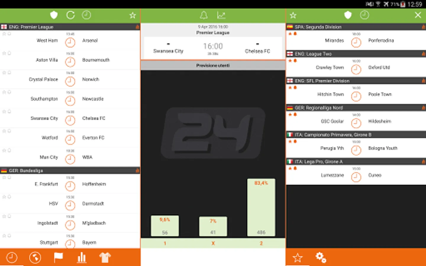Futbol24 – the fastest soccer live score app for android! Established in 2000, Futbol24 has since provided users with detailed information on in-play action in football competitions worldwide. Get real-time info in a matter of seconds when a goal is scored or a player receives a booking or a red card. This is the complete offer of the best mobile live score app on the market: