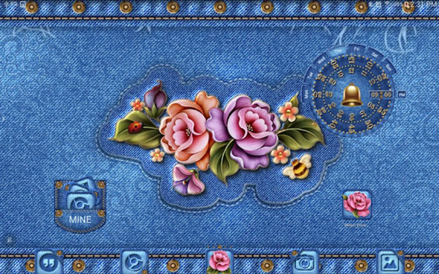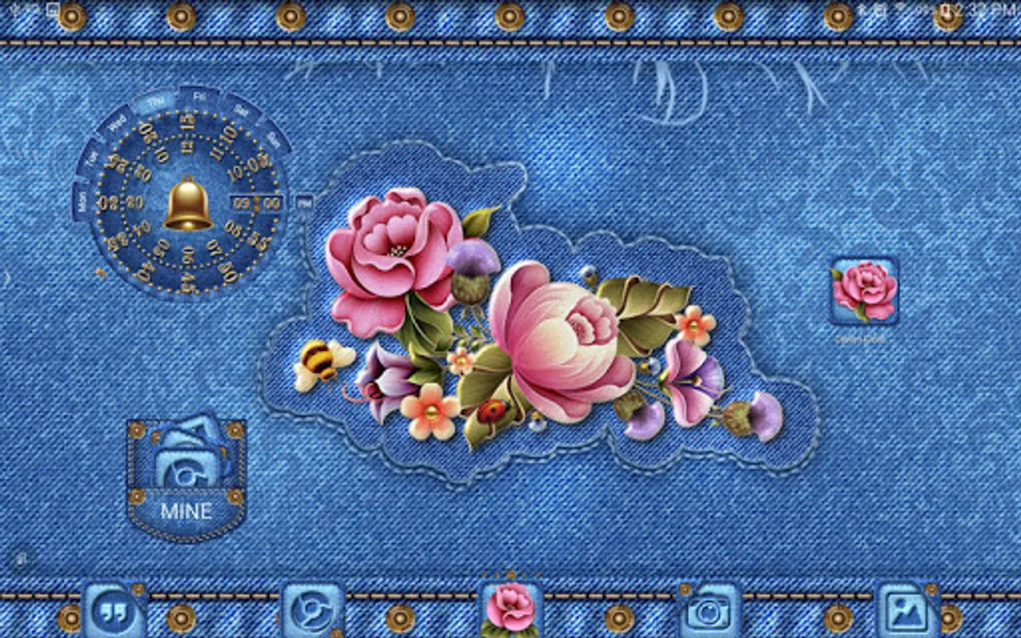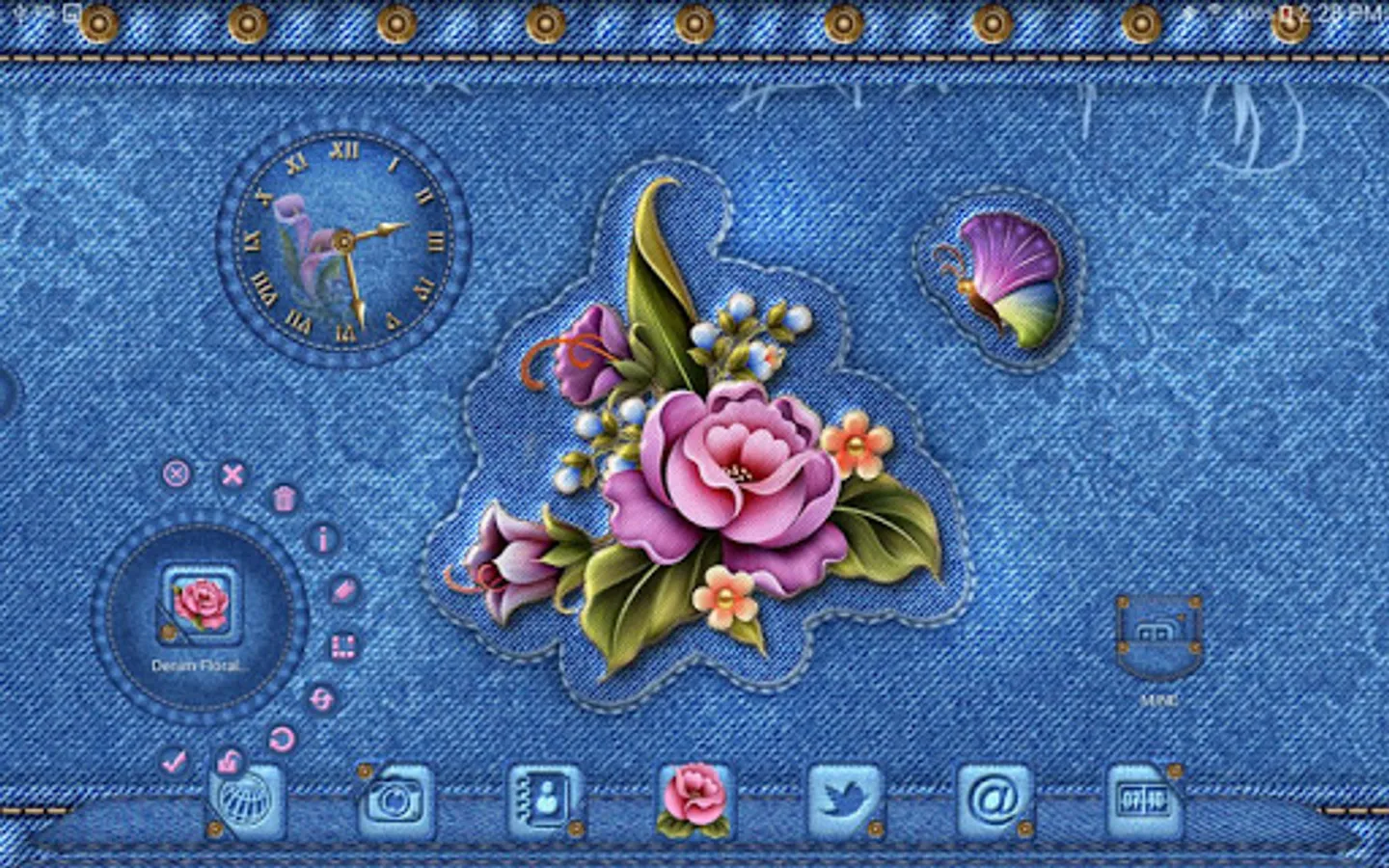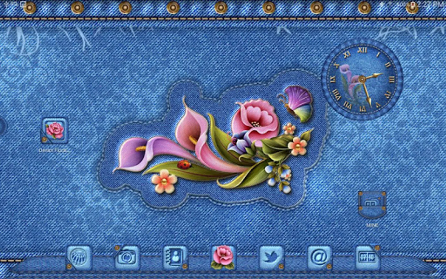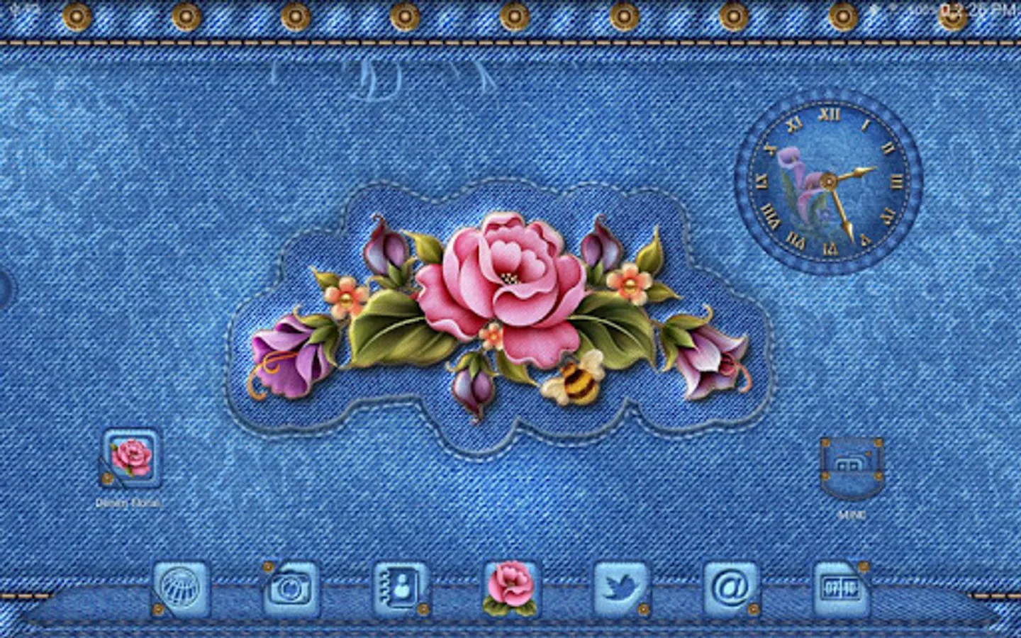 Press desktop > ADW Settings > Themes > Denim Floral Theme > Apply