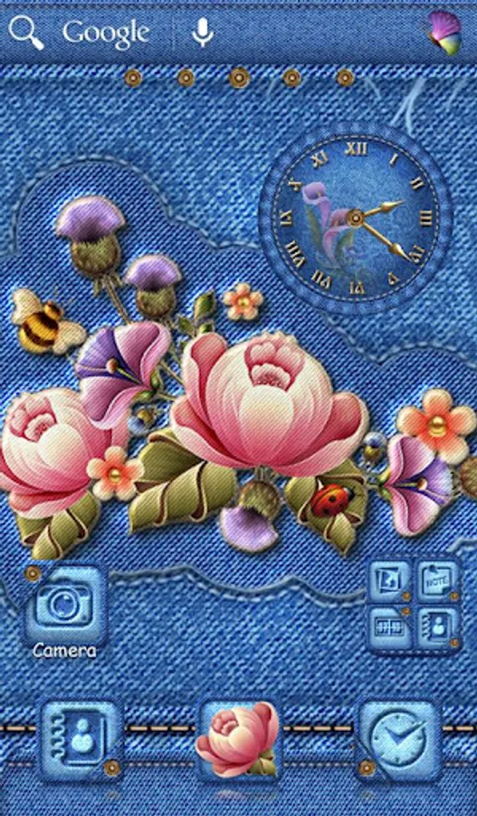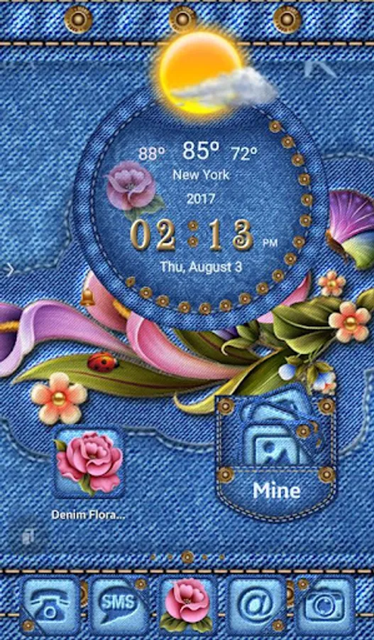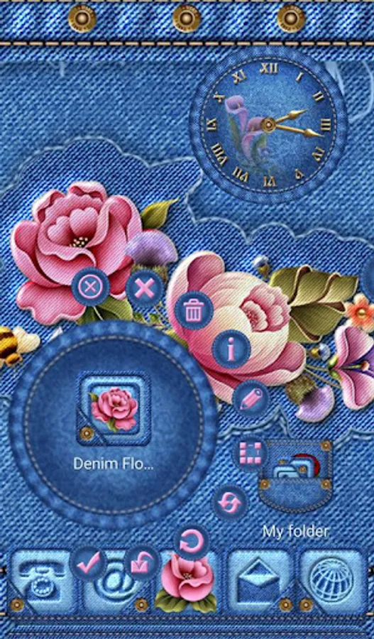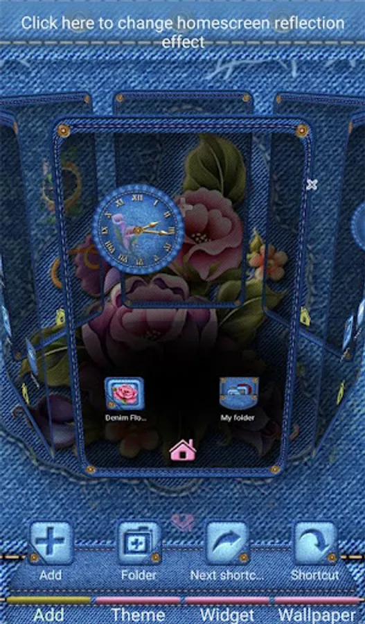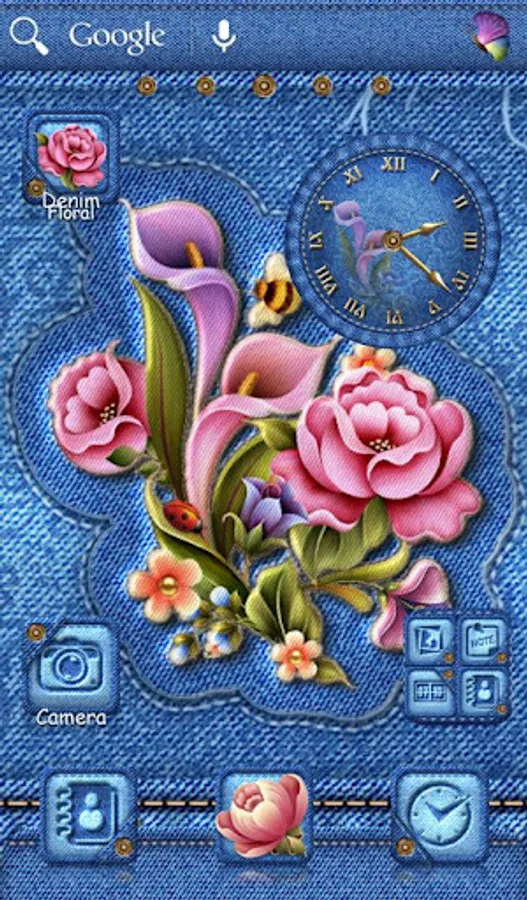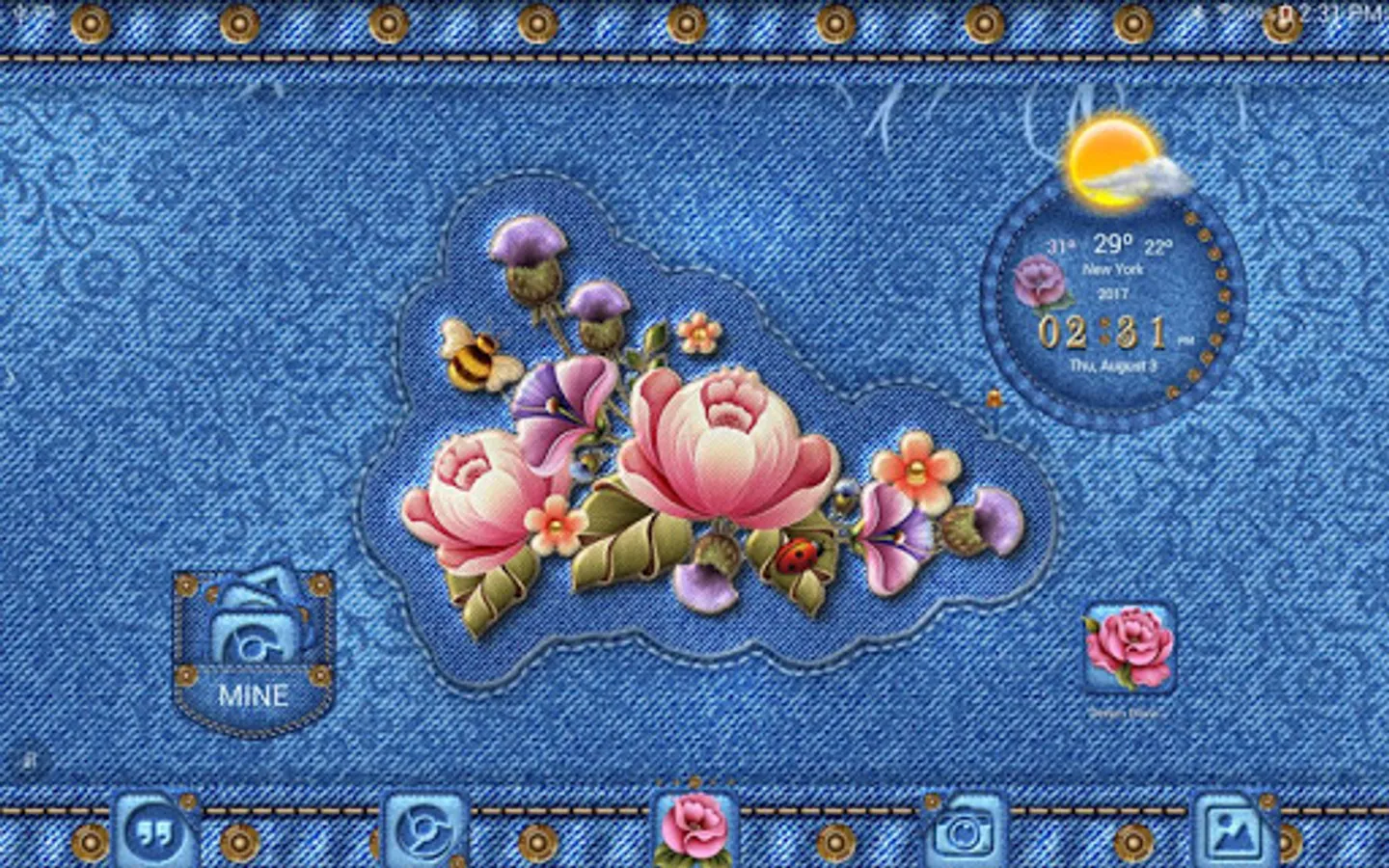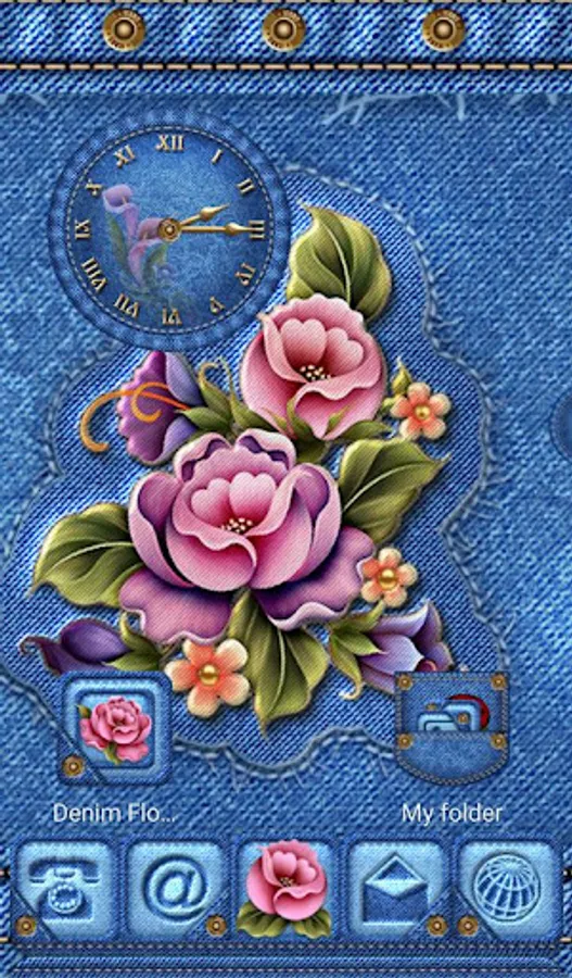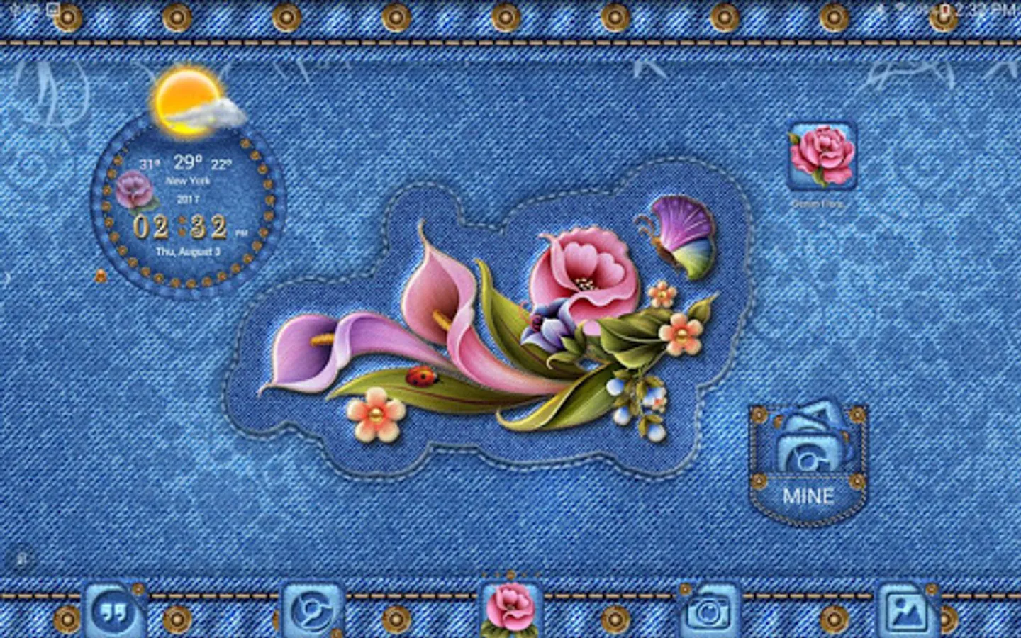 Press desktop > ADW Settings > Themes > Denim Floral Theme > Apply