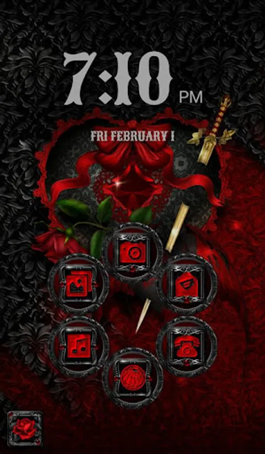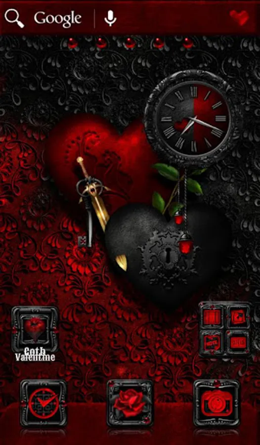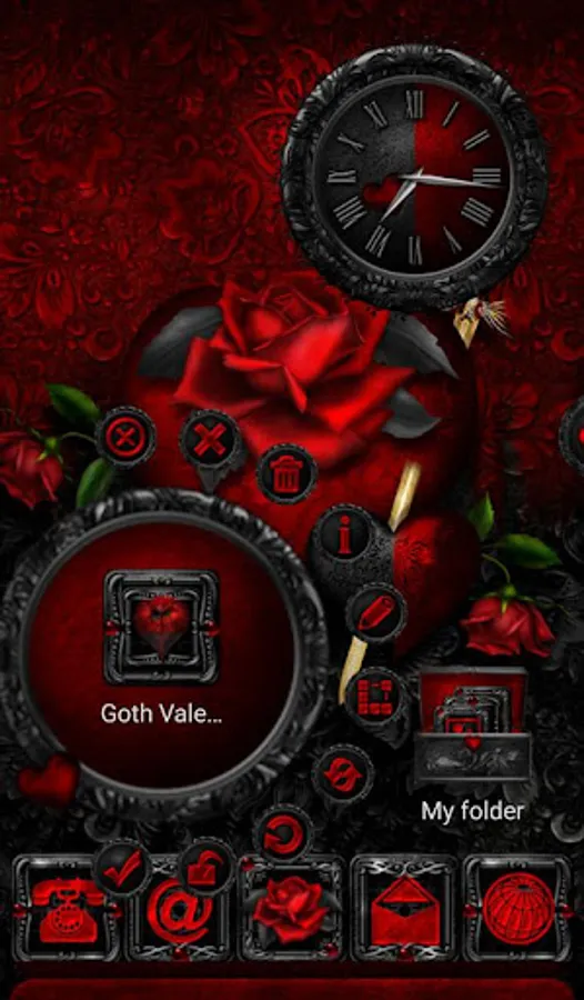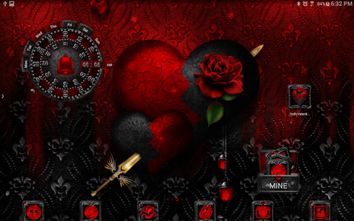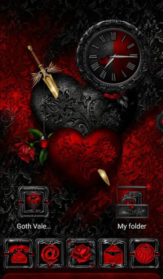 Press desktop > ADW Settings > Themes > Goth Valentine Theme > Apply