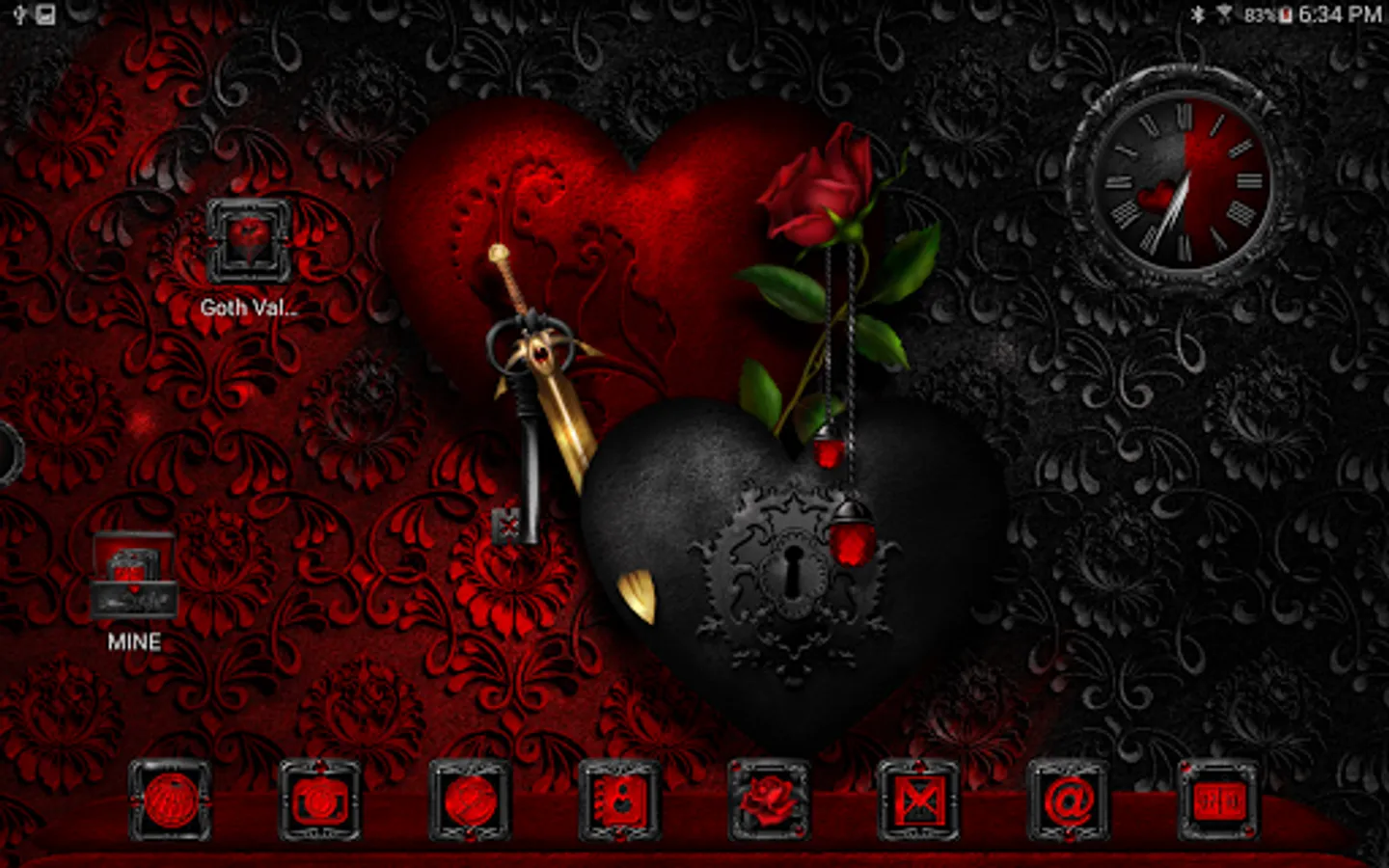 Press desktop > Widgets > scroll > Goth Valentine Theme > Goth Valentine clock