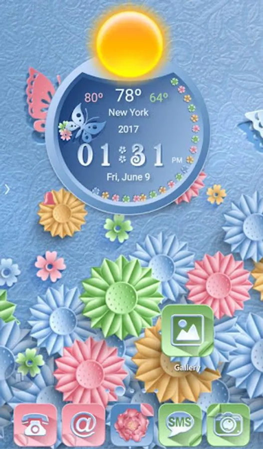 Press desktop > Add > Widgets > Paper flowers Theme > Paper flowers