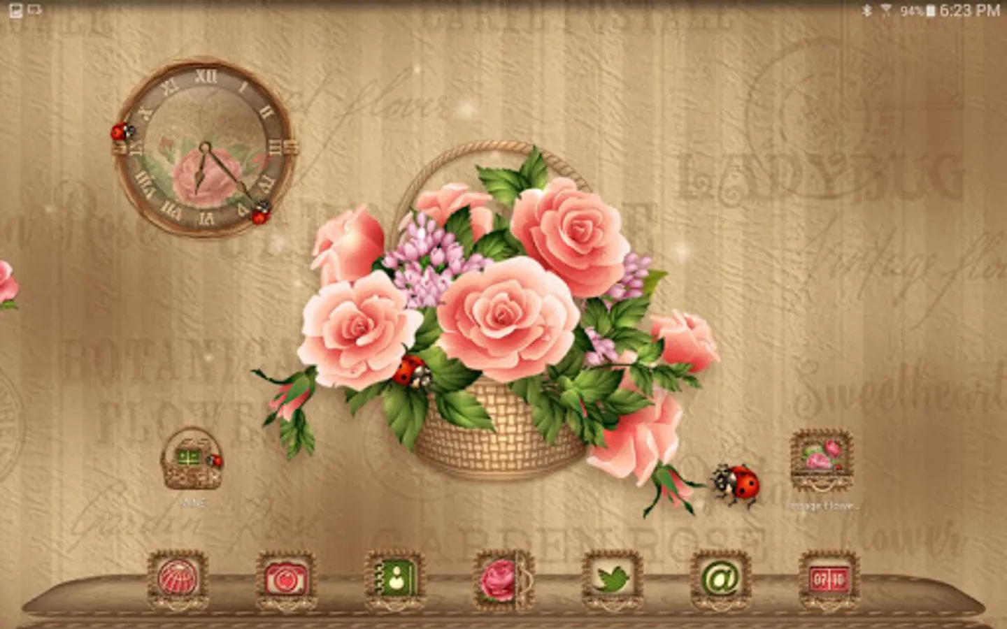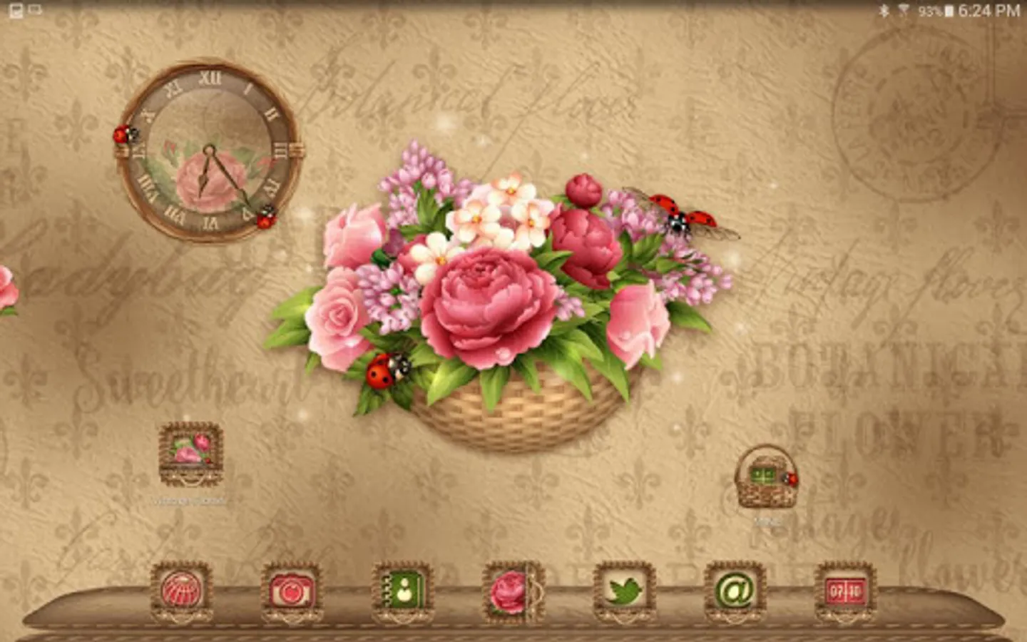 Press desktop > Widgets > scroll > Vintage Flower Theme > Vintage Flower clock