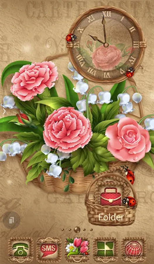 Press desktop > ADW Settings > Themes > Vintage Flower Theme > Apply
