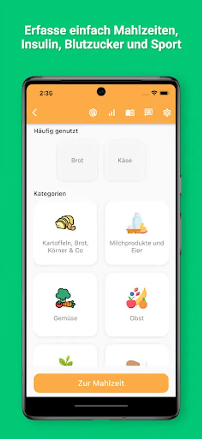 Record your meals, your insulin, your blood sugar and your sport in a few seconds.