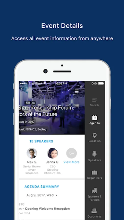 * Quick access to all event information including agendas, venues, speaker bios, session presentations, and ticketing