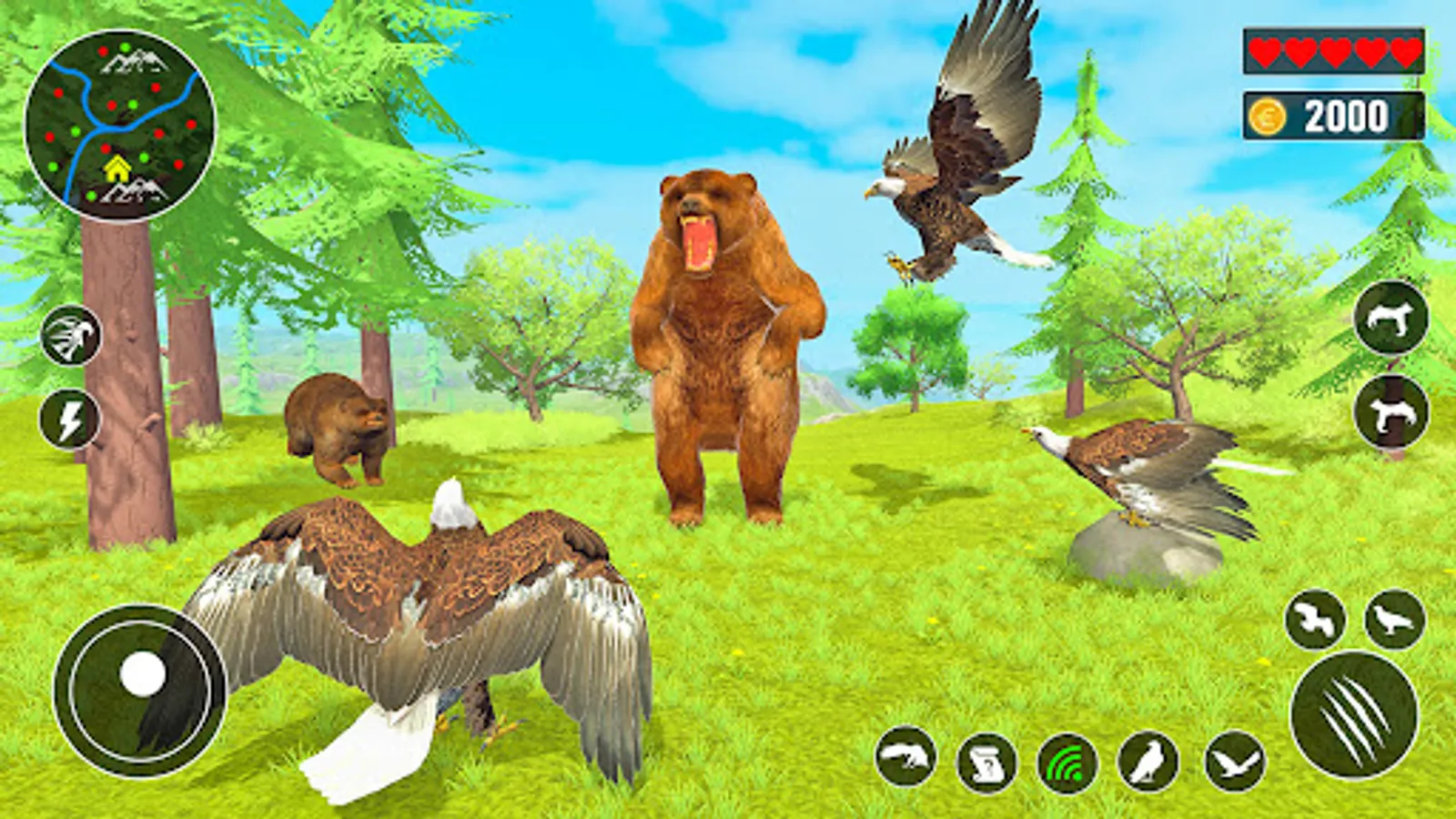 Wild eagle sim has animal family games feature, hunt small animals as prey to gain energy and health. Find mate and raise your falcon family in eagle family sim 3D. You need to maintain your health, hunger and thirst if you are going to survive on a wild jungle adventure. Play as clan of wild eagle and start your own flock of eagles, raise baby birds, start hunting and battle for your life against forest predators like wolf, leopard and bear. Start hunting for of goat and snake for your hunger and bring food for your mate and babies in animal family sim games. The clan of different birds and wild animals will attack on your nest & eggs so beware and ready for deadly fighting in wilderness of savanna jungle with eagle games 3d. Realistic eagle flying which is unseen in other Eagle fighting games and become a furious bald eagle.
