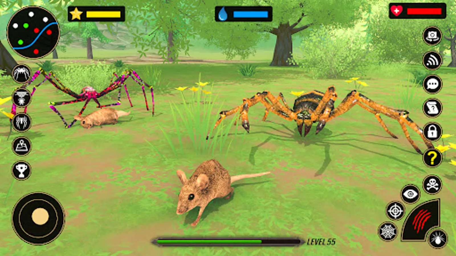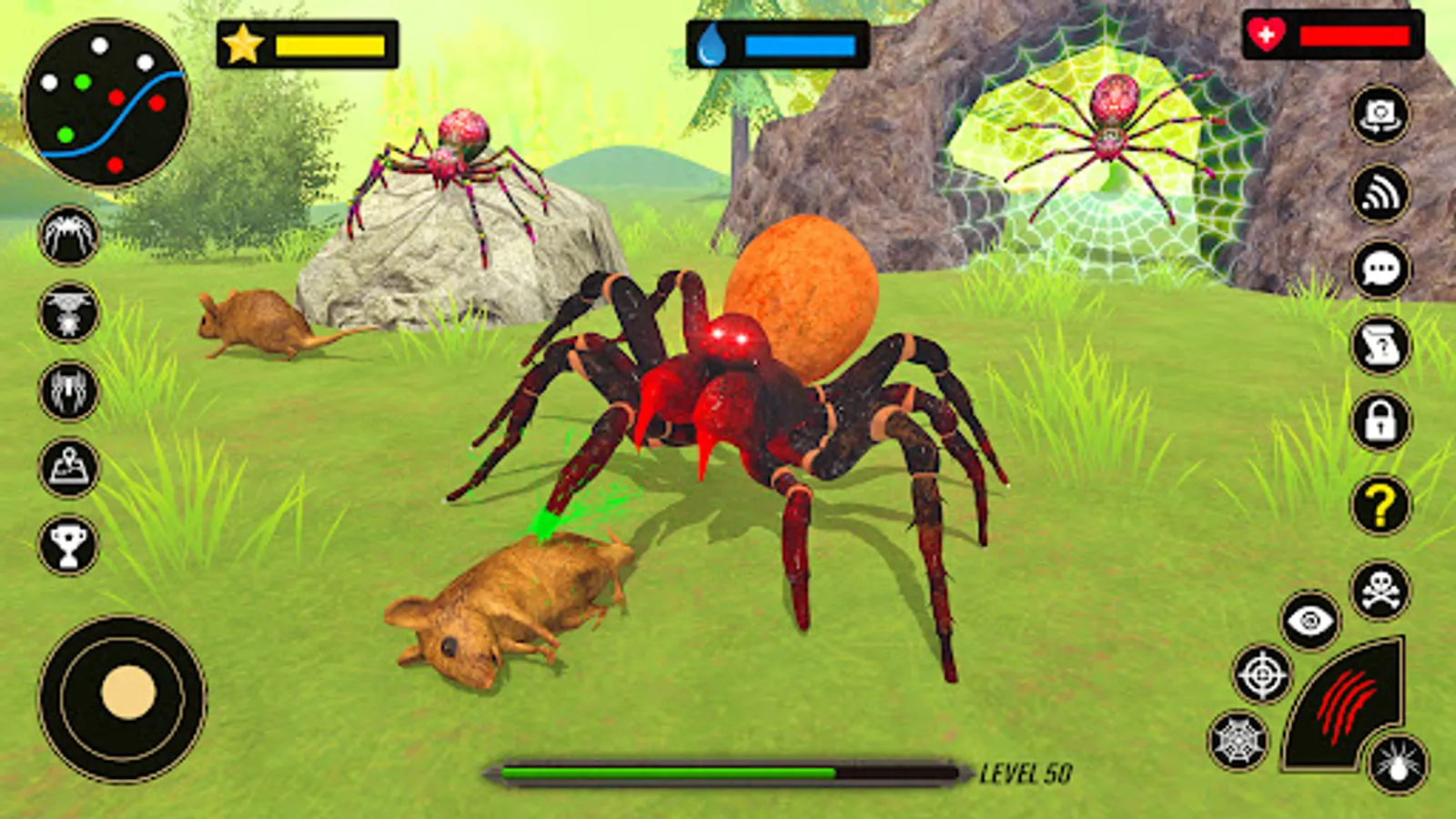 Be a venomous wild spider in big jungle, set trap for hunting, and find mate in this spider simulator. Control your spider in big insect world and live life of a real ultimate spider or black widow insect spider. Find soldier spiders and make clan of spiders for survival and hunt in the wildlife. Save your queen spider and take her to the safe cave. Become a most poisonous spider around the jungle and fight with multiple wild animals like rat, mouse, snake and other tarantula monster spider for your hunger and survival. Dip into this fantastic micro world, mark and defend your territory, explore the jungle, find a mate and have fun playing Spider Simulator: Life of Spider! And face the tropical jungle forest dangers with this ultimate spider game 2022.