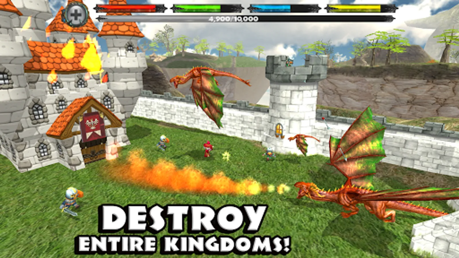 + LEVEL UP YOUR DRAGONS - Gain experience by defeating enemies and destroying buildings! Level up your dragons to increase their health, attack damage, and even unlock new attacks like Fire Breath!