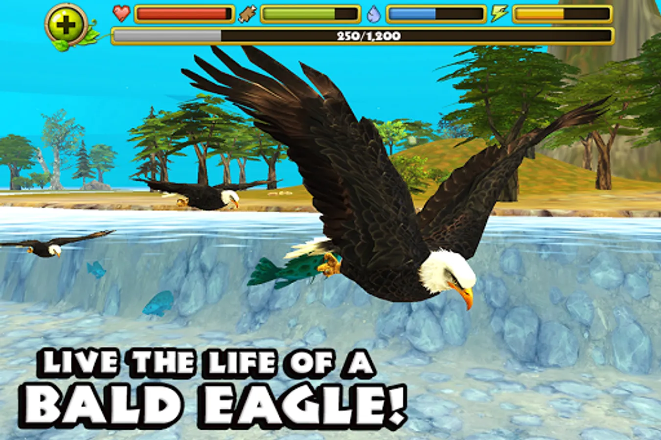 Soar through the skies and live life as a majestic Bald Eagle! Survive on a massive island filled with dangerous animals! Start your own flock of eagles, raise baby birds, snatch fresh fish from the water, and battle for your life against forest predators like wolves, foxes, and bears!