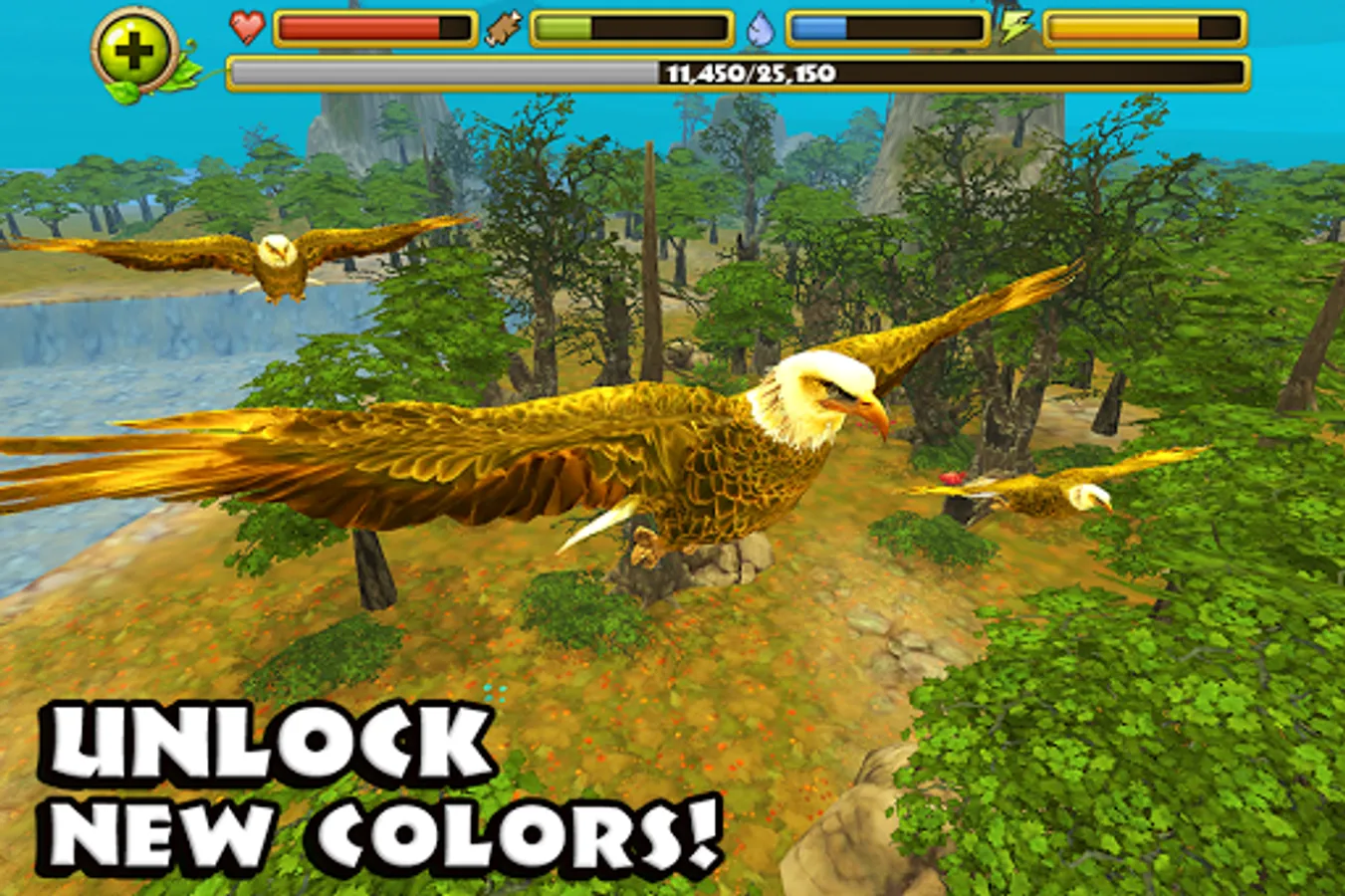 + LEVEL UP YOUR BIRD - Gain experience by defeating other animals and level up your eagles to increase their health, attack damage, and even unlock new eagle colors!