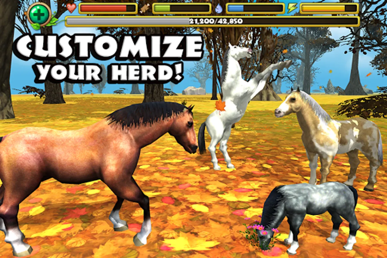 + START YOUR OWN HERD - Find up to 3 other wild horses to bond with and raise your very own family of horses! Breed foals and watch them grow in size and strength while they help you survive in the wild!