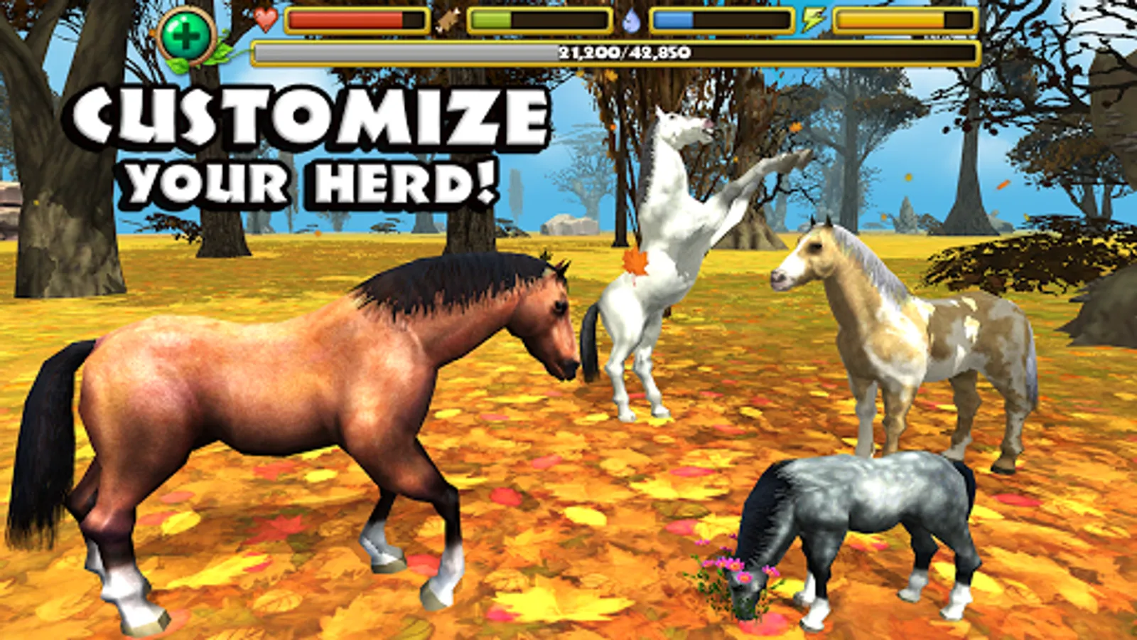 Enter into the wild and live the life of a Horse! Explore a vast world filled with ferocious predators and cute critters. Raise a family, search the woods for food and water, and protect your herd from fierce predators like wolves, bears, and foxes!