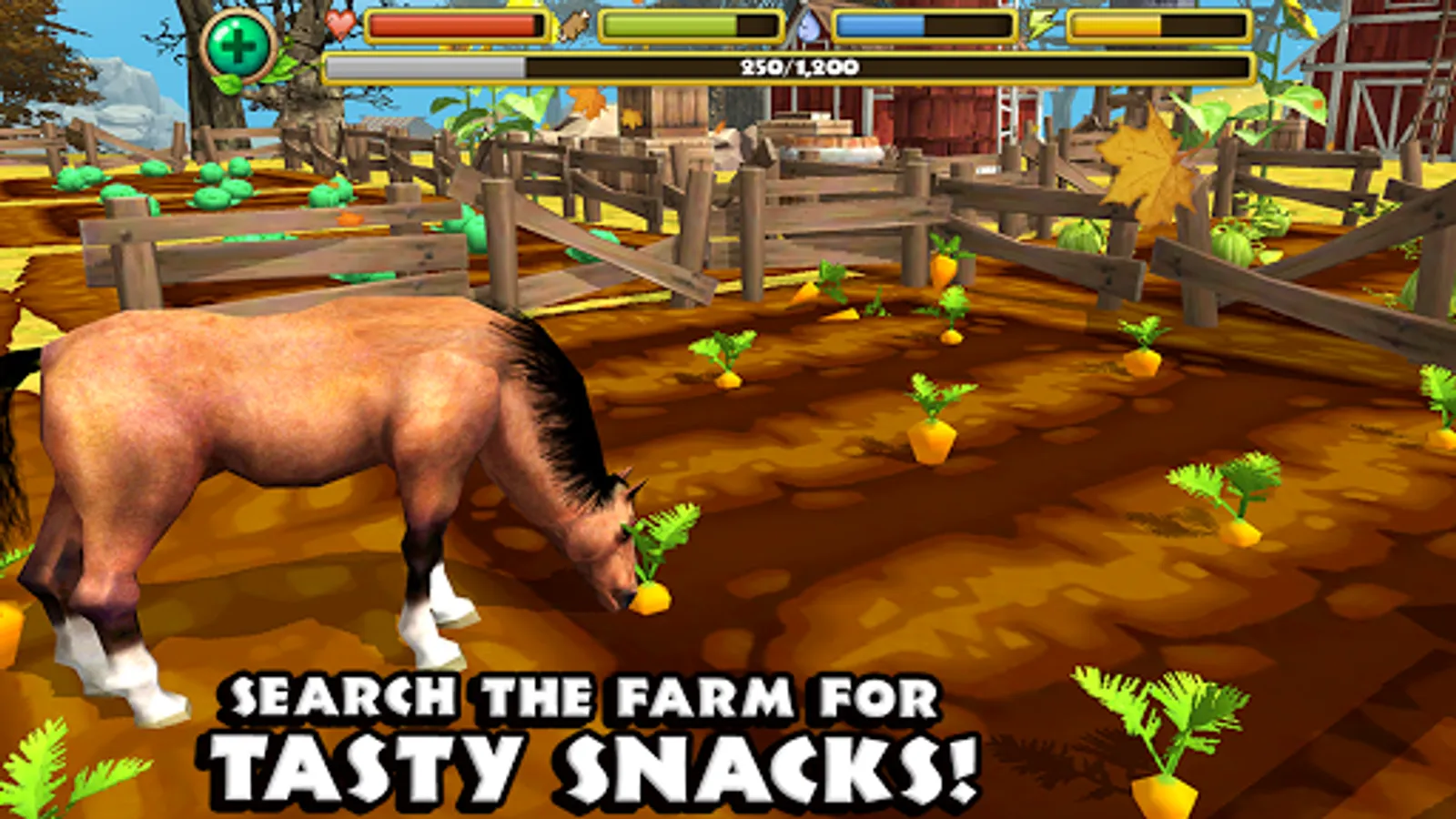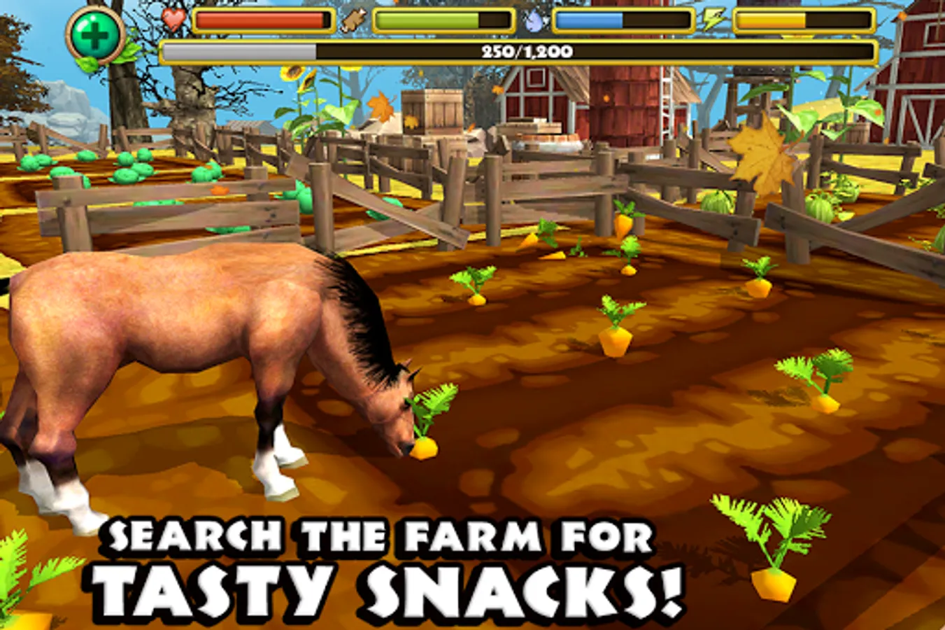 + LEVEL UP YOUR HORSE - Gain experience by grazing on grass, stealing crops, and fending off predators. Level up your horses to increase their health, attack damage, and even unlock new coat and mane color combinations!