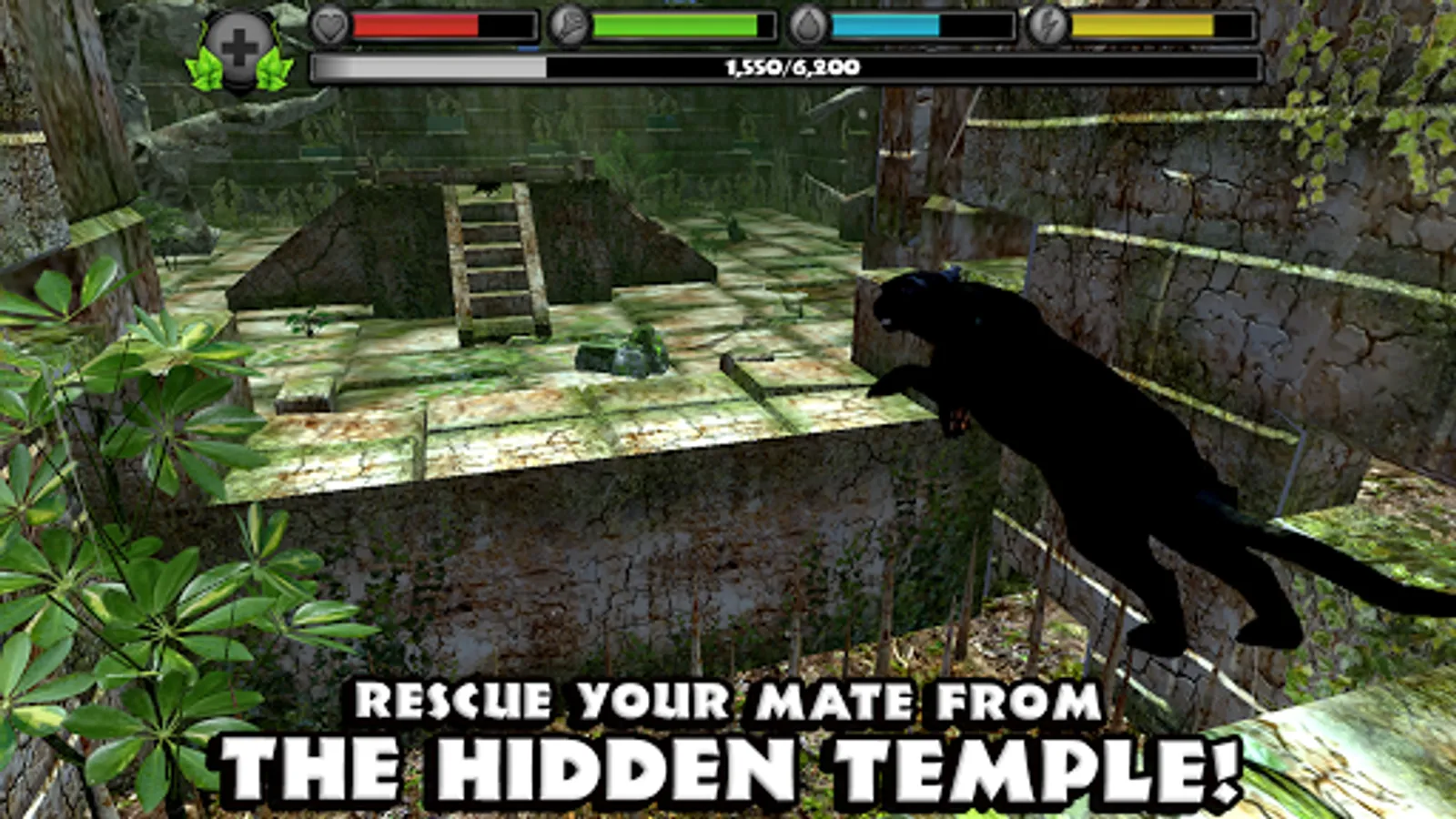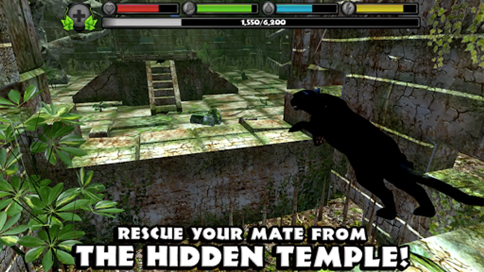Rescue your mate from a hidden temple and raise your very own family! Breed up to four panther cubs and watch them grow in size and strength while they help you survive in the rainforest!