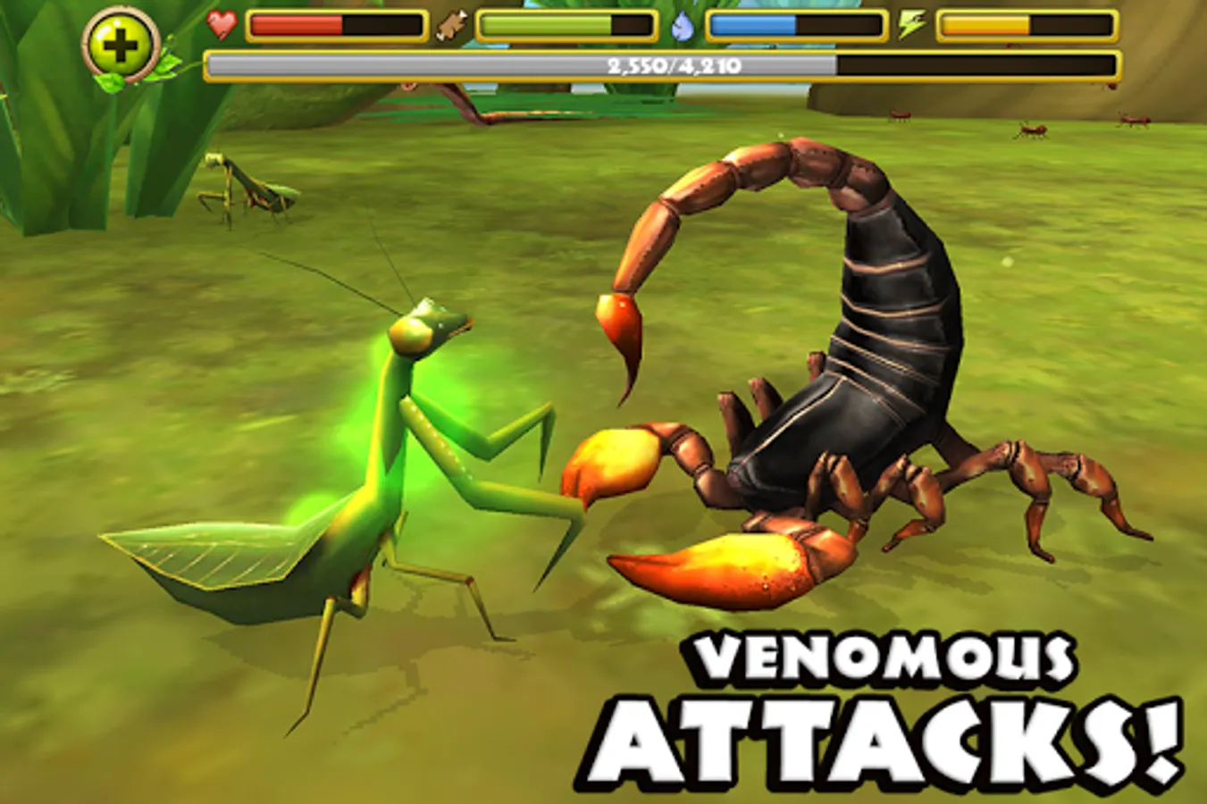 + EPIC BATTLES - Use your powerful pinchers and poisonous stinger to fight dangerous animals and catch tasty insects!