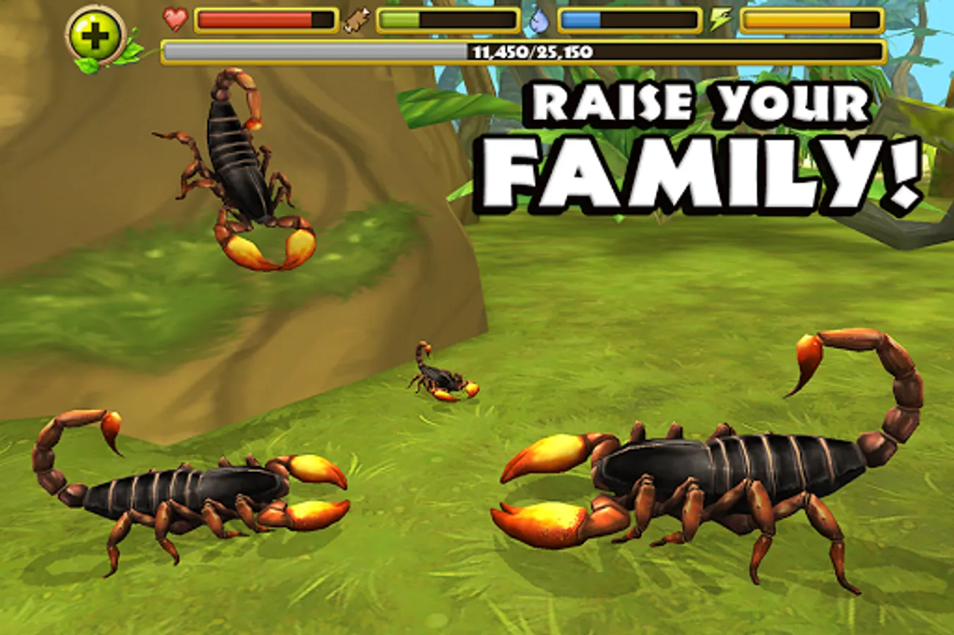 + START A FAMILY - Find a mate to bond with and raise your very own brood of scorpions to help you hunt! Watch your baby scorplings grow in size and assist you in combat!