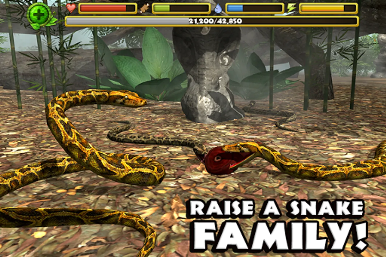 + START A SNAKE FAMILY - Find a mate to bond with and raise your very own family of snakes! Hatch your eggs and watch your baby snakes grow in size and strength as they help you battle your enemies!