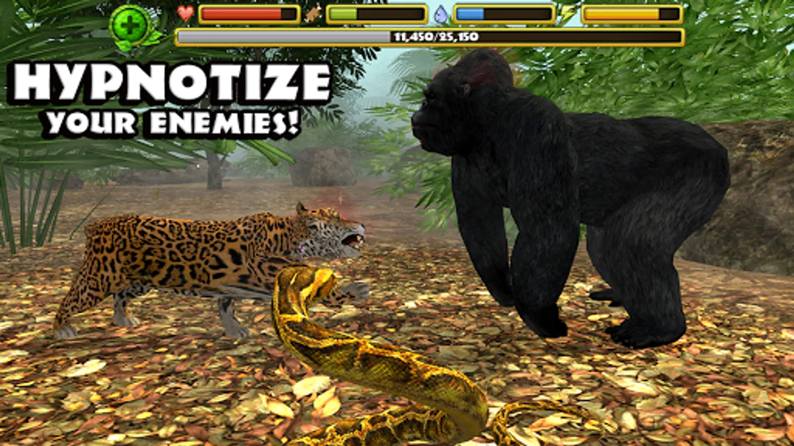 + EPIC BATTLES - Use your razor sharp fangs, swift speed, and hypnotic stare to hunt down tasty critters and fight dangerous rainforest animals like the silverback gorilla!