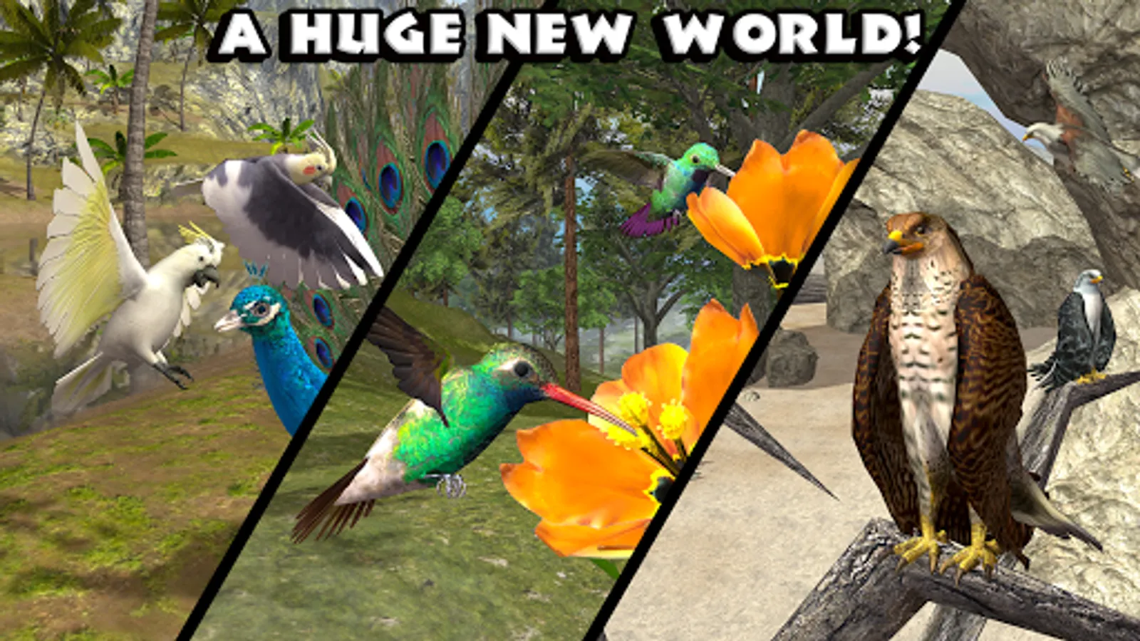 Soar into a brand new adventure as a majestic Eagle, swift Falcon, or a colorful Parrot! For the first time ever, choose from TWELVE PLAYABLE BIRDS! Hunt down food in a massive realistic world, lay eggs, raise your flock, and unlock exciting new playable birds as you experience the life of a bird!