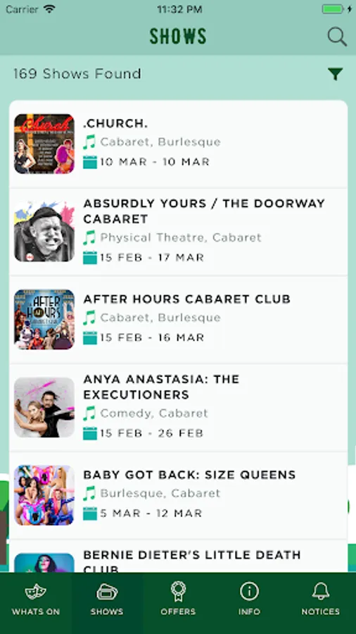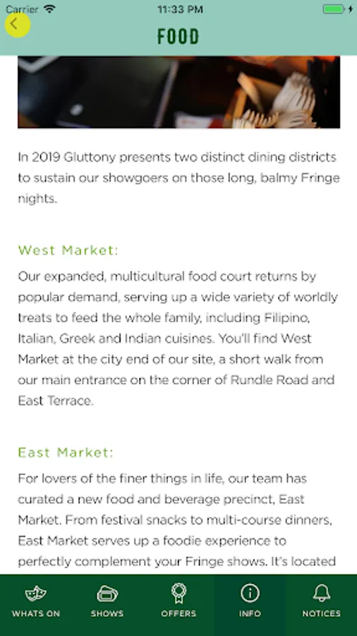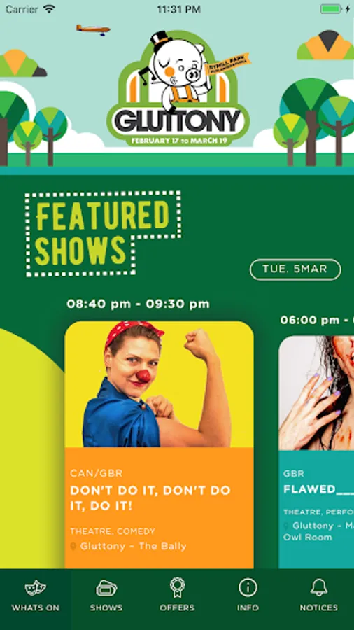 Download our app today to keep up to date with artist profiles, performance times, offers and more!