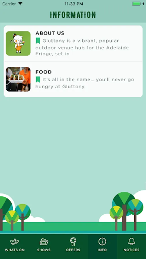 Gluttony is a vibrant, popular outdoor venue hub for the Adelaide Fringe, set in the beautiful surrounds of Rymill Park in Adelaide’s East End: a festival within a festival. In 2018 we celebrated 27 Fringe weekly award winners, and played host to 10 out of the top 20 best-selling shows at the Adelaide Fringe.