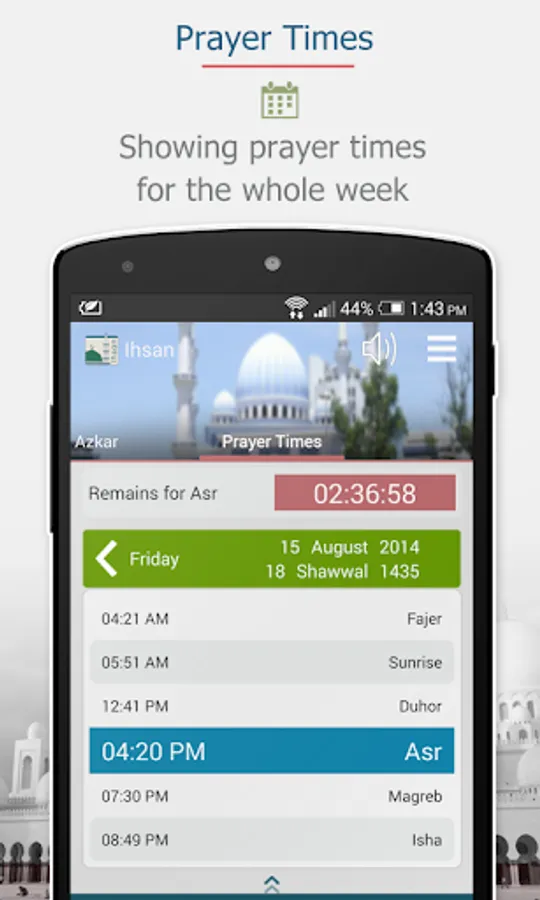 - Muezzin, reminds you of the times of the five daily prayers at the time.