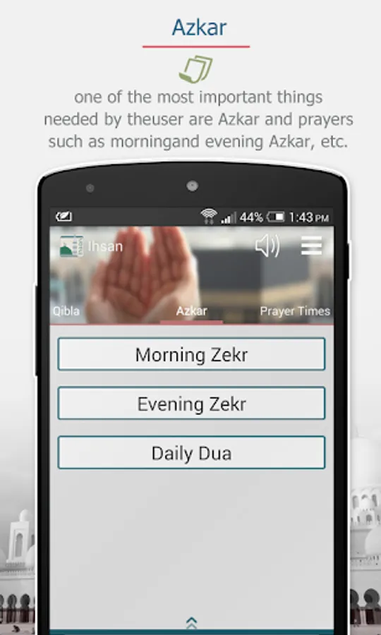 2- Azkar, one of the most important things needed by the user are Azkar and prayers such as morning and evening Azkar, etc.