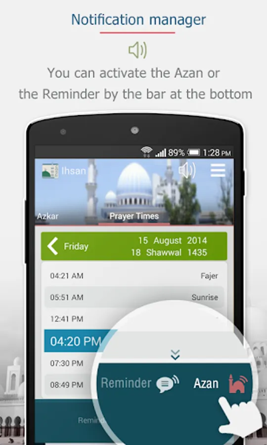 - Muzakir, remind you to read the morning and evening Azkar ..etc.