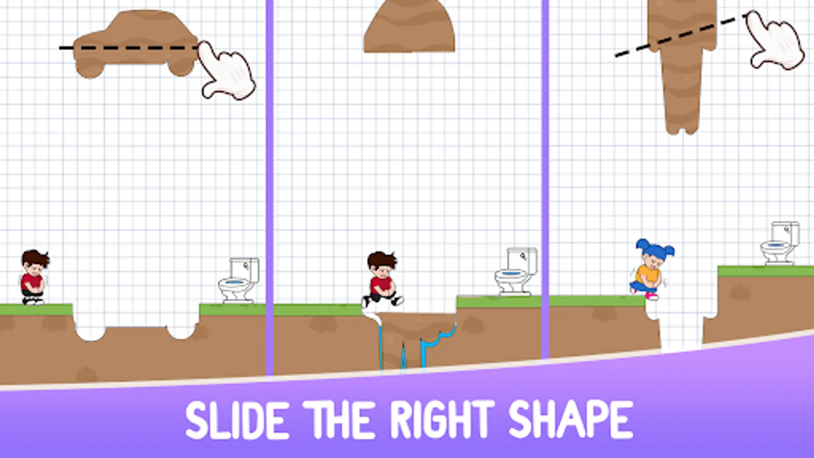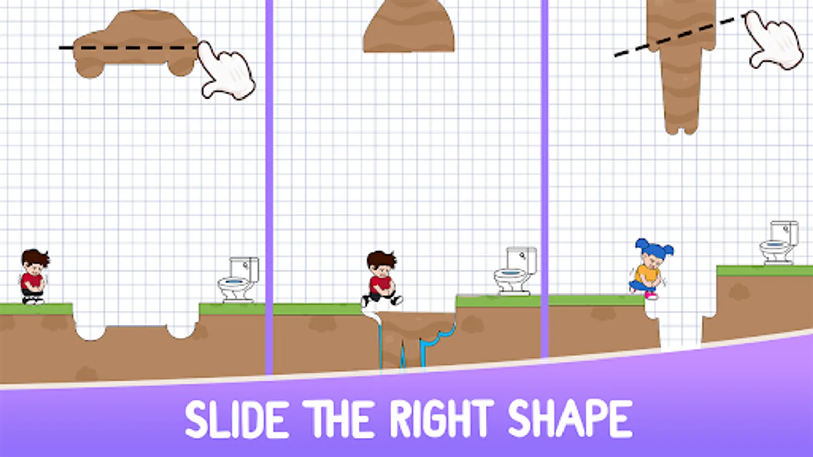 In Toilet Rush: Slice Puzzle , your quest is to find the way to reach Toilet. Draw a line to connect the villain and the toilet - but How fastest you can go to help him/her release the pressure