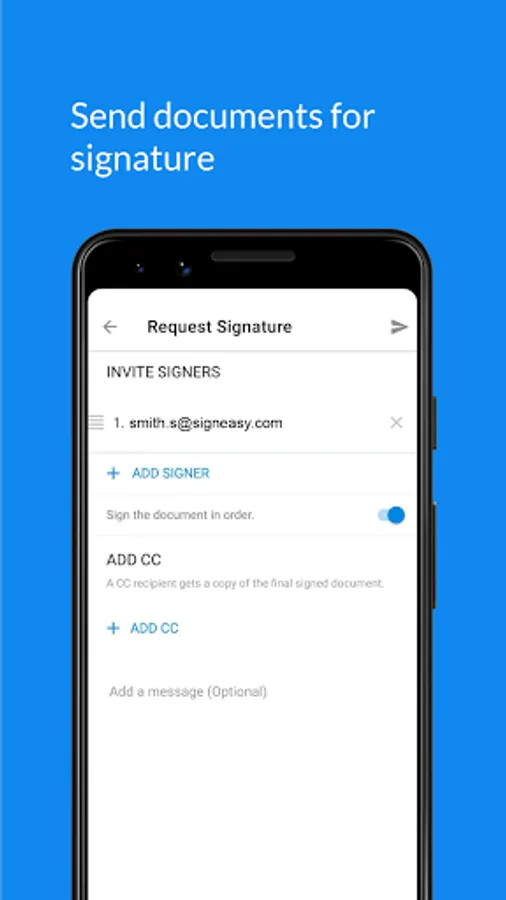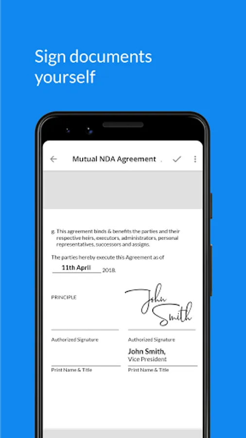Signeasy is an easy way to sign documents, fill and sign forms, and send documents for e-signature. With Signeasy, eSignatures, digital signatures, and signatures are legally binding, ensuring a seamless way to handle and sign your documents, backed by a digital audit trail.