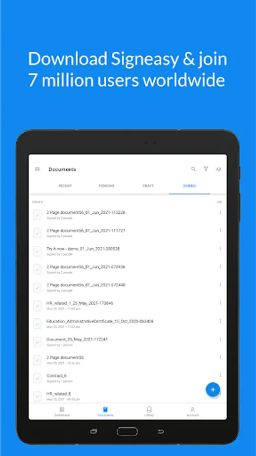 Join more than 30,000 organizations and 7 million users worldwide who trust Signeasy to close deals faster by eliminating paperwork. Download the Signeasy app now.