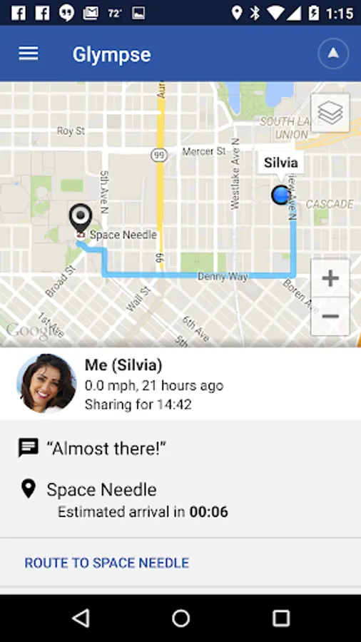 Send a Glympse to let friends and family know you are on your way. Request a Glympse from a colleague who is always running late. Set up a Glympse group for your family reunion.