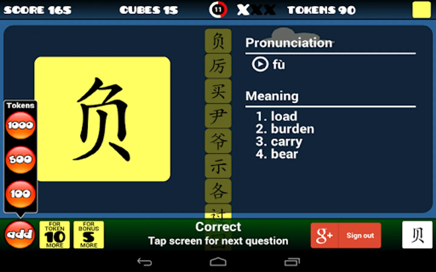 Post your scores online to compare with your circle of friends or the global leader-board but most of all have fun learning chinese characters.