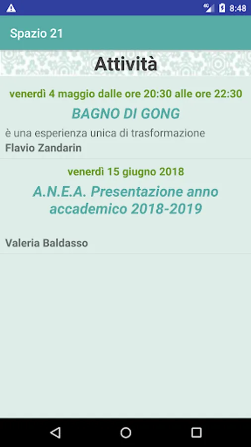 Viewing the activities of Spazio 21